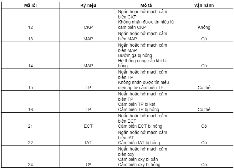 Bảng mã lỗi trên Yamaha Nouvo SX