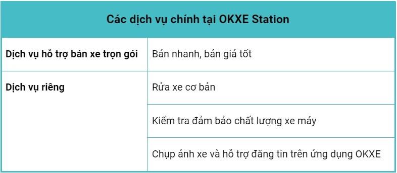 Bảng thông tin về các dịch vụ được cung cấp tại OKXE Station: