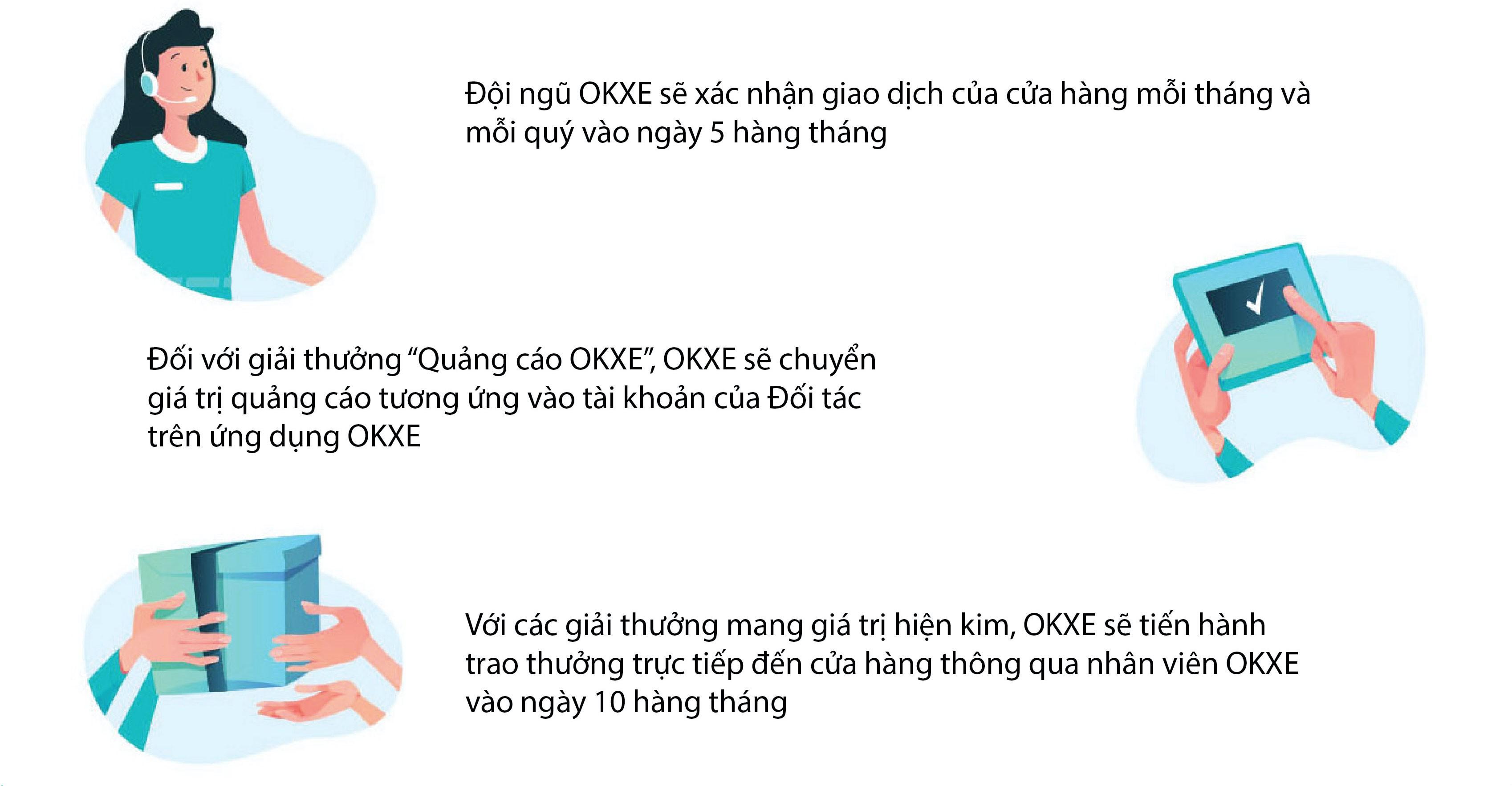 - OKXE được sử dụng hình ảnh, thông tin cửa hàng đạt giải cho các mục đích truyền thông của mình.