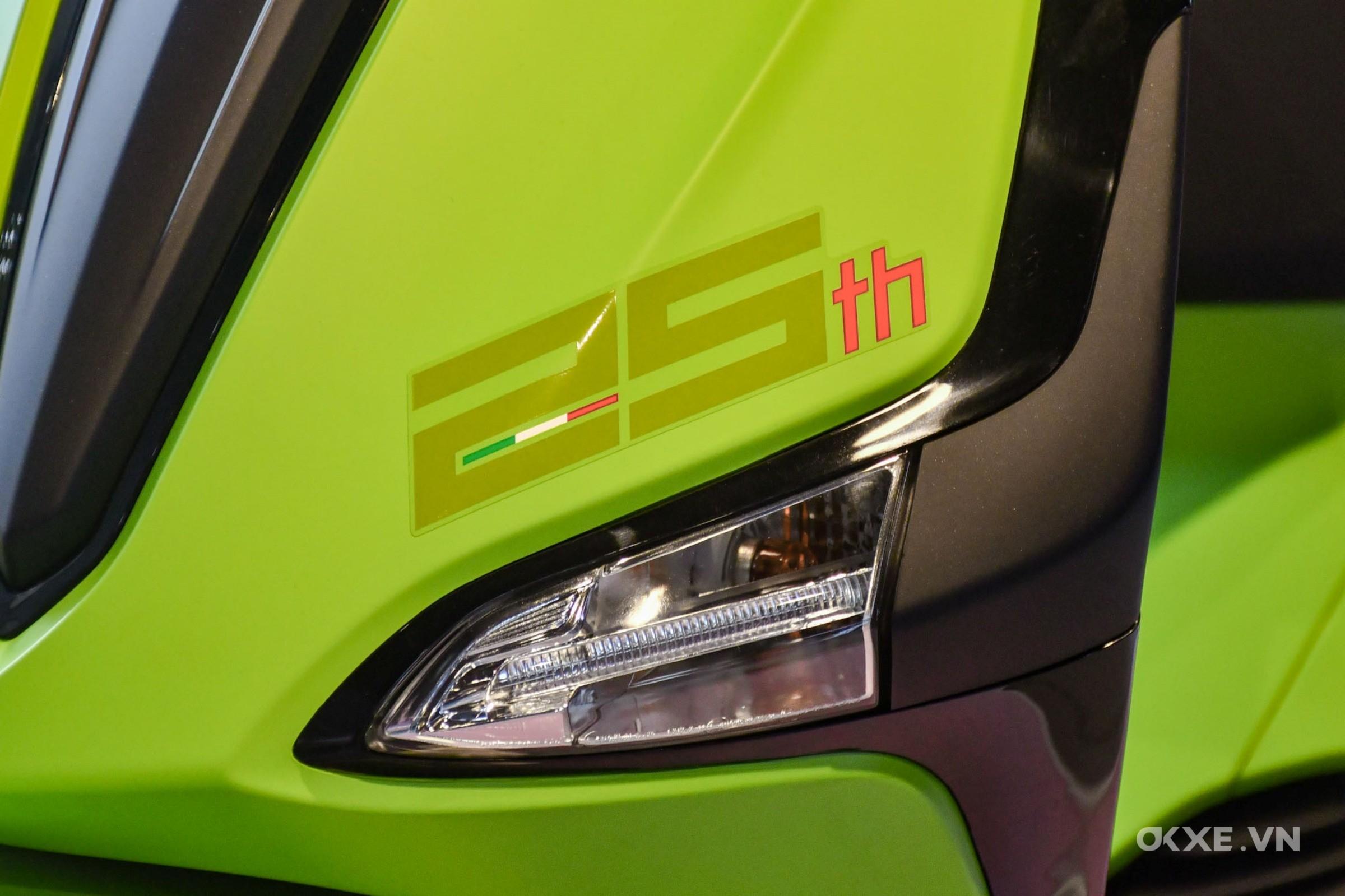 Bên cạnh sắc màu nổi bật ấn tượng thì điểm nhấn của phiên bản Đặc biệt này chính là bộ tem 25th, đánh dấu mốc 25 năm kể từ thời điểm những chiếc Liberty đầu tiên được ra mắt. Bạn có thể thấy thiết kế của tem có kích thước lớn trên cả thân xe, yếm xe kết hợp với sắc đỏ trong chi tiết thể hiện, đem đến cho Liberty 2023 phiên bản Đặc biệt thêm sự trẻ trung, phóng khoáng và đầy phá cách.