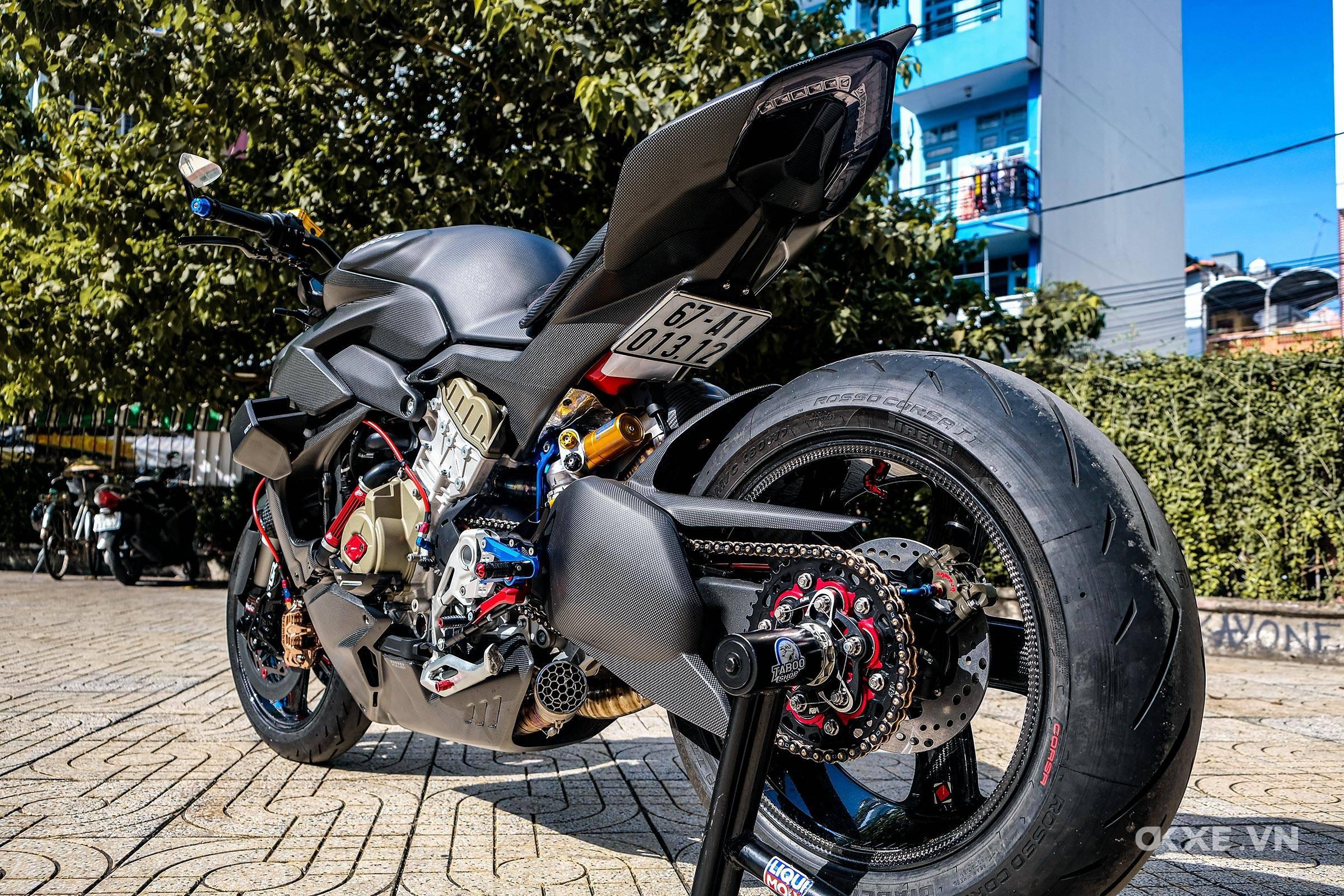 Mẫu nakedbike Ducati Streetfighter V4 S độ của biker An Giang tiêu tốn lên đến 2 tỷ đồng tiền trang bị. Bản độ được thực hiện bởi workshop có tiếng tại TP.HCM.